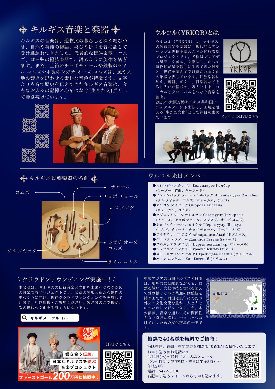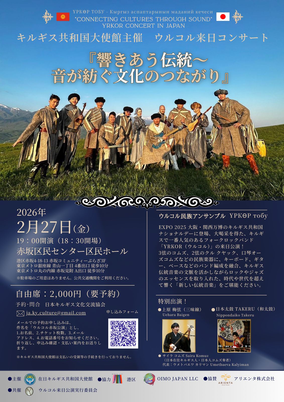 2026年2月27日(金)「ウルコル来日コンサート『響きあう伝統~音が紡ぐ文化のつながり』」(キルギス共和国大使館主催)